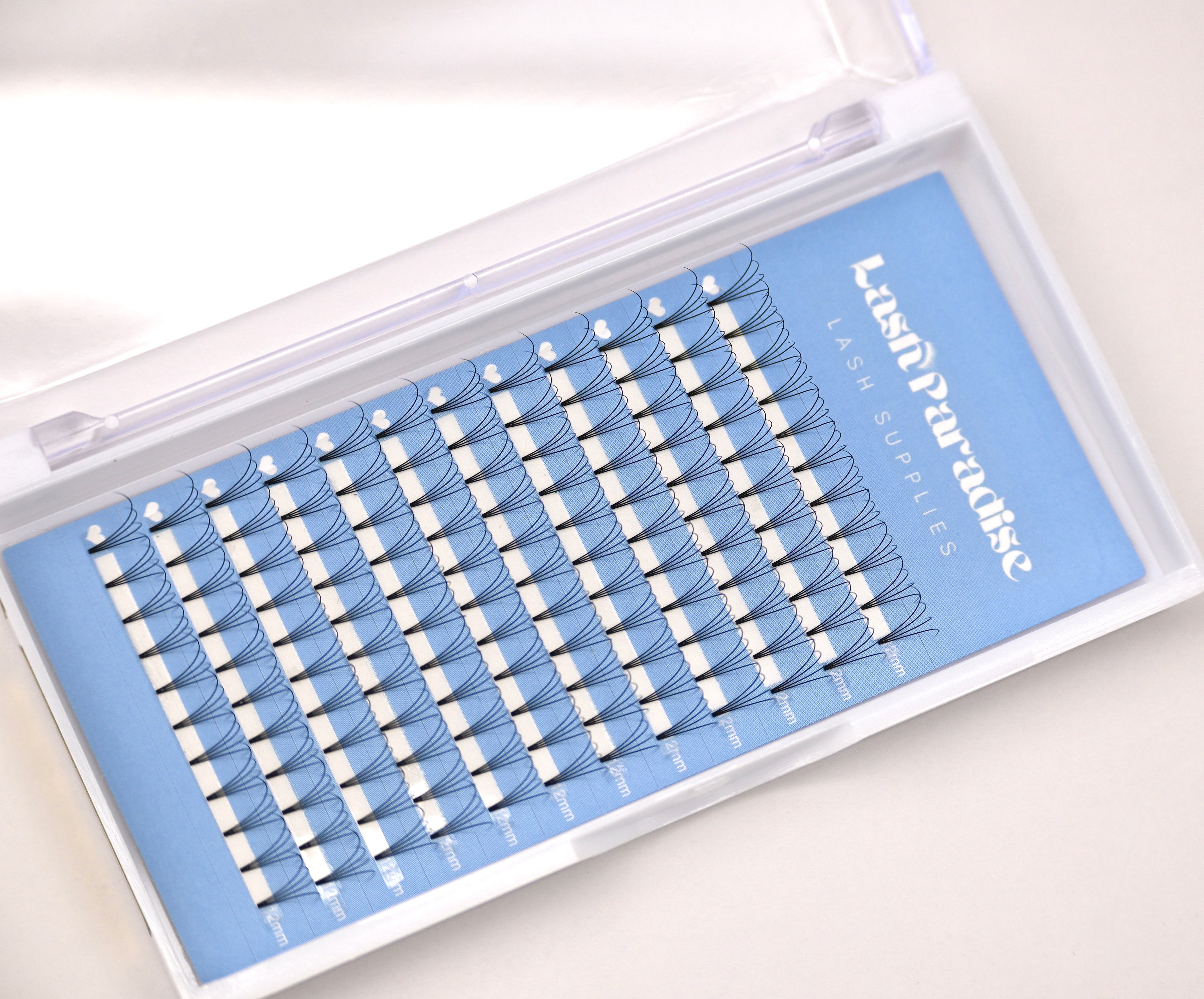 Elevate your lash game with our 4D Short Stem Premade Tray. Designed for clients seeking a bit more drama than classic sets, these fans offer a soft, glamorous look that's still natural.